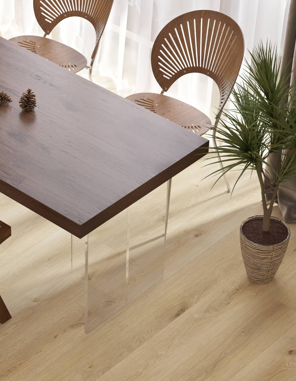 Odporność napromieniowanie UV Dzięki swoim właściwościom podłoga jest światłotrwała, czyli Uodporniona na promieniowanie UV. nie blaknie, nie ulega przebarwieniom, co pozwala na swobodne przestawianie mebli.