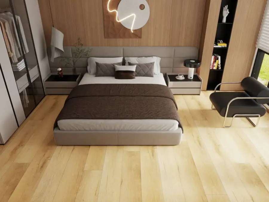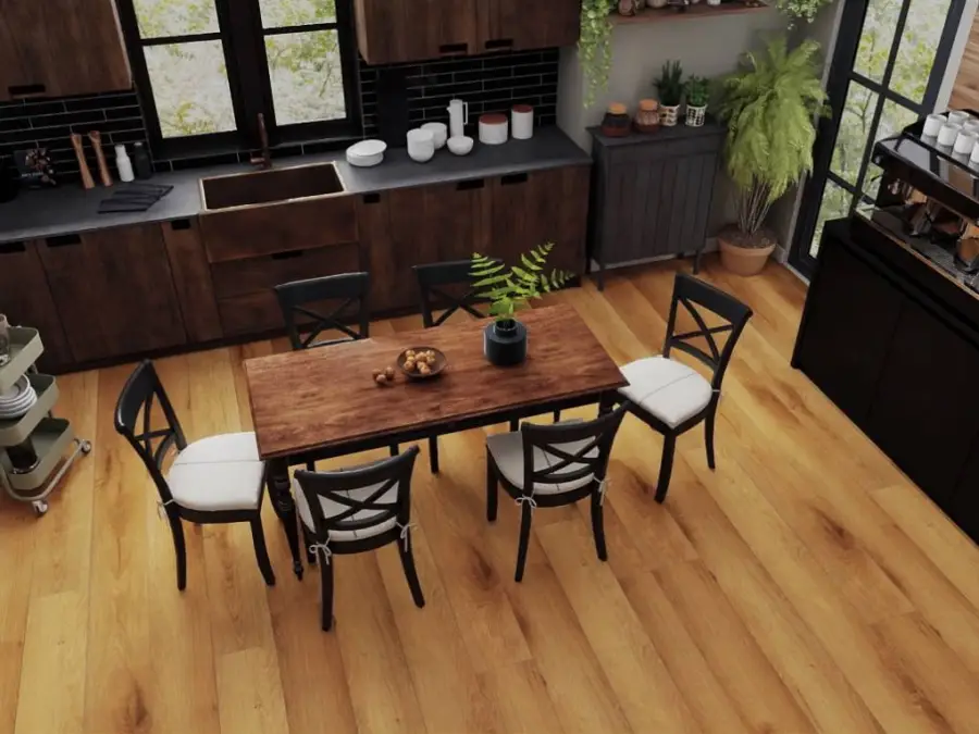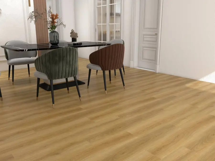 Dzięki sztywnemu rdzeniowi mineralnemu podłoga wyróżnia się wyjątkową odpornością na zużycie, stabilnością wymiarową oraz 100% wodoodpornością. To sprawia, że doskonale sprawdza się nie tylko w salonach czy sypialniach, ale również w przestrzeniach narażonych na wilgoć - takich jak kuchnie i łazienki.